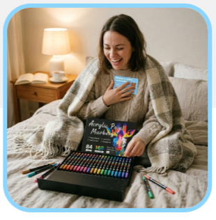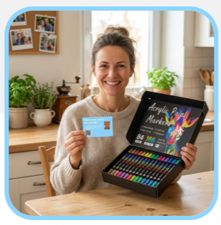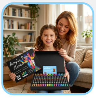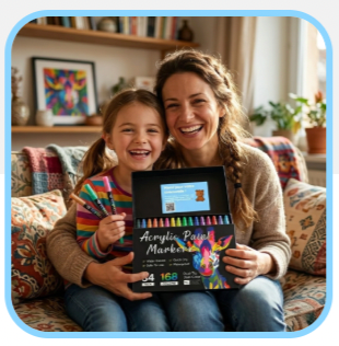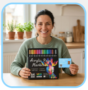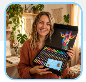 Con AcryliPop™, tutto questo è finito. La nostra formula acrilica garantisce una copertura perfetta fin dal primo tratto: i colori sono intensi, coprono tutto e non passano mai dall'altra parte, nemmeno su carta sottile.